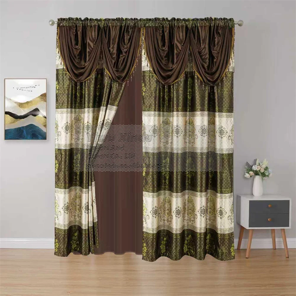 Wholesale Luxury Modern High Shade Living Room Curtains Valance Beads Double Layer Elegant Living Room Curtains
